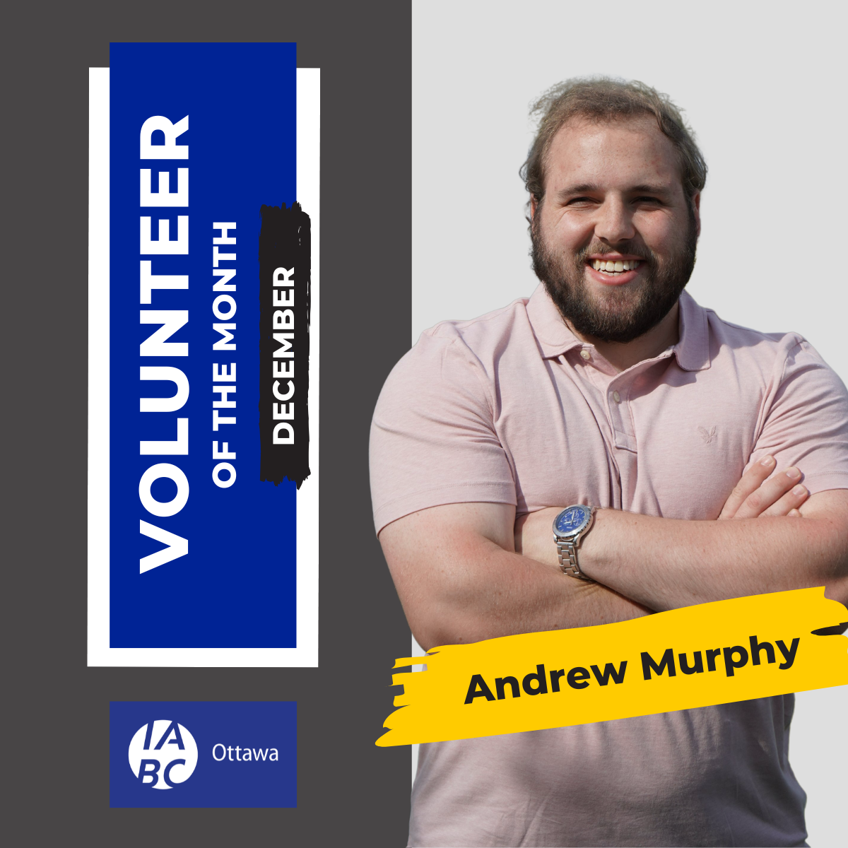 Although December is behind us, IABC Ottawa would like to recognize Andrew Murphy, our volunteer of the month for the month of December. Andrew is the Director of Digital Analytics and has been essential to our digital presence — helping us grow.